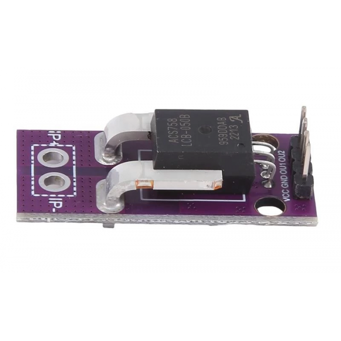 Description/Features: Industry-leading noise performance through proprietary amplifier and filter design techniques Integrated shield greatly reduces capacitive coupling from current conductor to die due to high dV/dt signals, and prevents offset drift in high-side, high voltage applications Total output error improvement through gain and offset trim over temperature Small package size, with easy mounting capability Monolithic Hall IC for high reliability Ultra-low power loss: 100 μΩ internal conductor resistance Galvanic isolation allows use in economical, high-side current sensing in high voltage systems 3.0 to 5.5 V, single supply operation 120 kHz typical bandwidth 3 μs output rise time in response to step input current Output voltage proportional to AC or DC currents Factory-trimmed for accuracy Extremely stable output offset voltage Nearly zero magnetic hysteresis Specifications: type: 50A Due to different batches, there may be differences in product appearance and printed text, which not affect use. Material: abs colour: PurpleFull Arduino Code:// === Pin Definitions === const int currentSensorPin = A0; // ACS758 output connected here const int relayControlPin = 8; // Goes to base resistor of transistor // === Sensor Calibration (for ACS758-050B) === const float zeroCurrentVoltage = 2.5; // 2.5V when no current (center voltage) const float sensitivity = 0.04; // 40mV per Amp (for 50A version) void setup() { Serial.begin(9600); // For debugging pinMode(relayControlPin, OUTPUT); // Relay driver pin digitalWrite(relayControlPin, LOW); // Make sure relay is OFF at start } void loop() { int adcValue = analogRead(currentSensorPin); // Read analog voltage float voltage = (adcValue * 5.0) / 1023.0; // Convert to volts float current = (voltage - zeroCurrentVoltage) / sensitivity; // Calc current in amps Serial.print("Voltage: "); Serial.print(voltage); Serial.print(" V, Current: "); Serial.print(current); Serial.println(" A"); // === Threshold Relay Logic === if (current > 10.0) { // If current > 10 Amps digitalWrite(relayControlPin, HIGH); // Turn ON relay } else { digitalWrite(relayControlPin, LOW); // Turn OFF relay } delay(1000); // Wait 1 second before next reading }